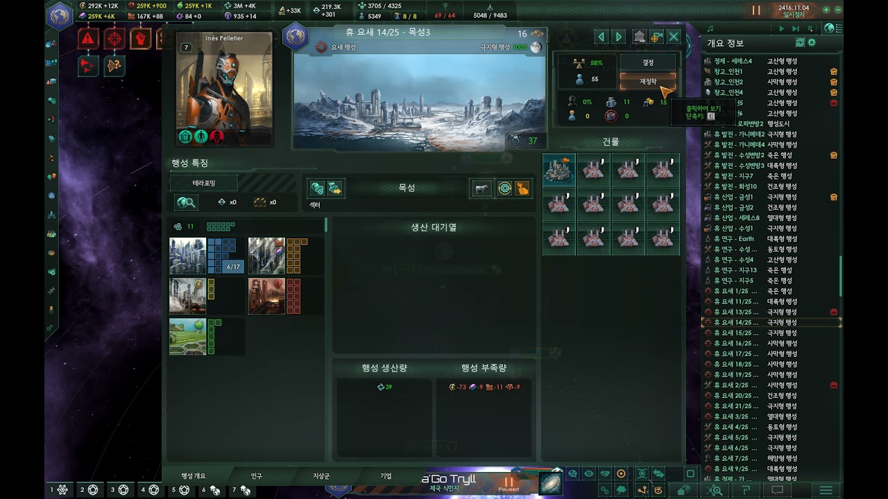 다만 ‘적합도(Habitability)’ 관리는 필수입니다. 적합도가 40~50% 이하인 행성은 유지비도 많이 들고, 편의나 주거 문제 때문에 사실상 짐덩어리가 될 가능성이 높아요. 이런 곳에 무리하게 건물을 도배하기보다는, 딱 필요한 행정 업무나 기본 자원 채굴만 돌리는 ‘전초기지’ 느낌으로 운영하세요.